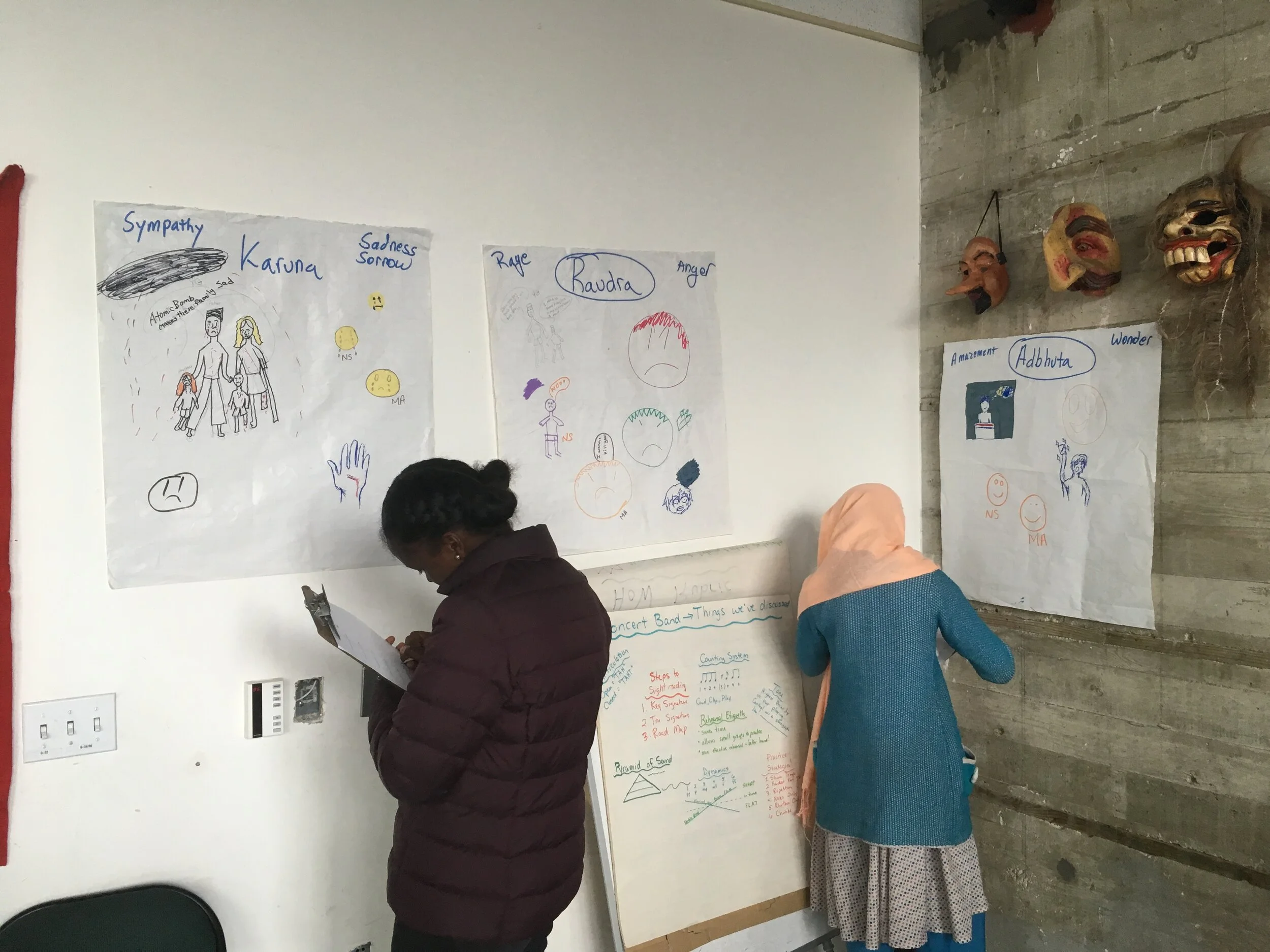 Students during a Gallery Walk of Rasa drawings